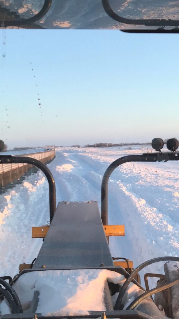 As part of the Site Services Agreement with Mosaic K3, CORE maintains the site during the winter months by removing snow from parking lots, around site trailers and all roads within the perimeter. This service is required 24/7 in order to keep the site operational for the client and all contractors.