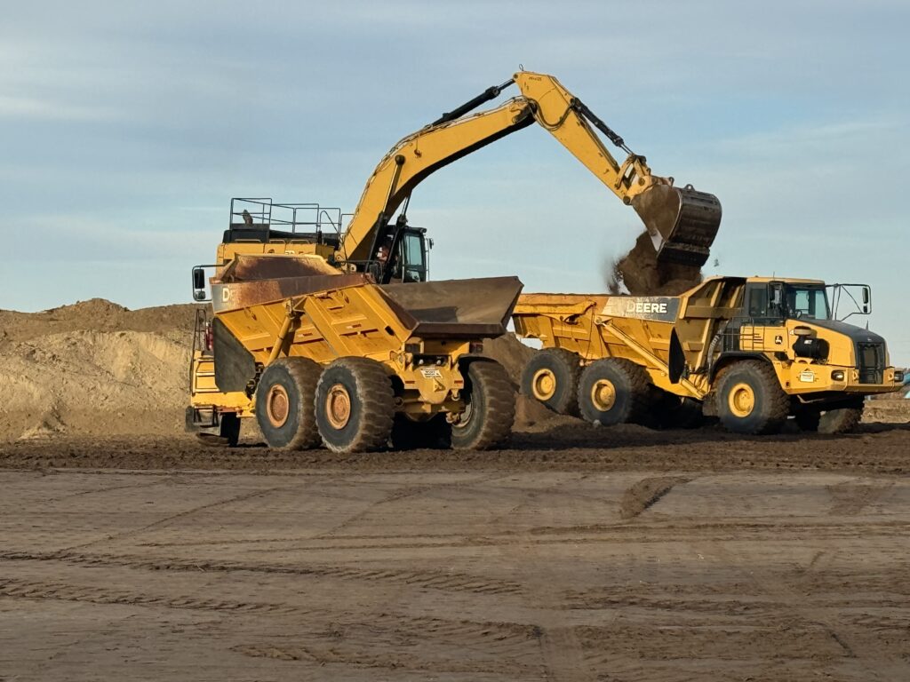 - Cut and fill native material to design elevations, utilizing cut material from high areas of the site as well as native material excavated in preparation for the installation of structural fill.