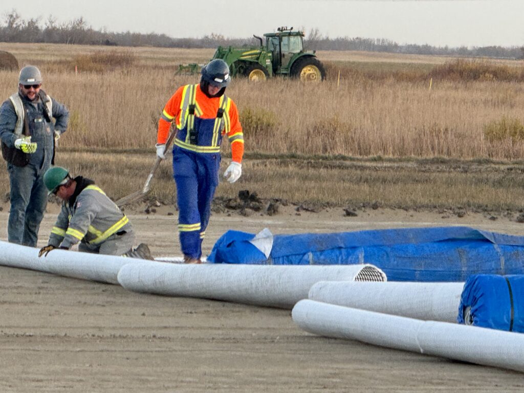 - Drainage swales, culverts, berms, geogrid, gravel, topsoil replacement and seeding.